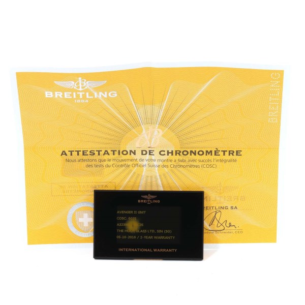 | Model Name: | Breitling Aeromarine Avenger II GMT Black Dial Mens Watch A32390 Box Papers |