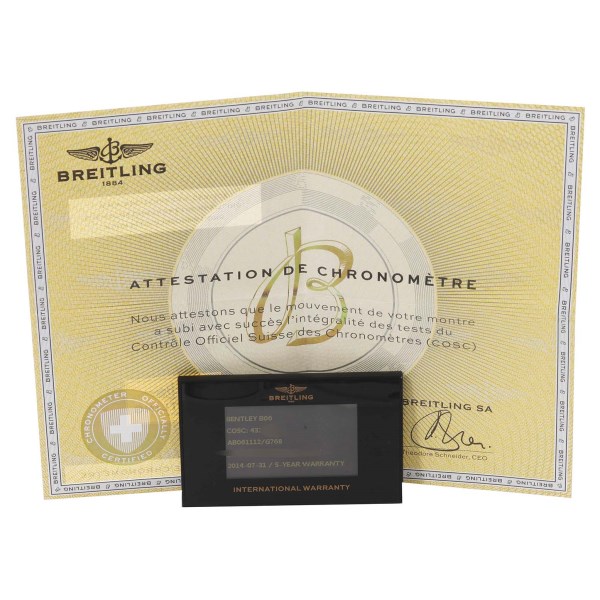 | Model Name: | Breitling Bentley B06 Silver Dial Chronograph Watch AB0611 Box Card |