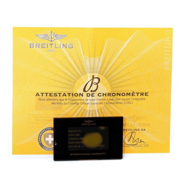 | Model Name: | Breitling Bentley Motors GT Special Edition Mens Watch A13362 Box Card |