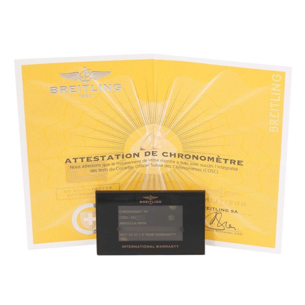 | Model Name: | Breitling Chronomat 01 Mother of Pearl Steel Limited Mens Watch AB0111 Box Card |