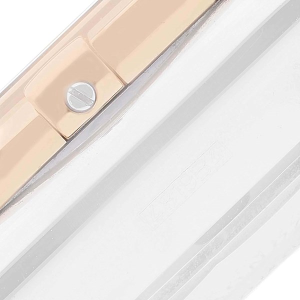 | Bracelet: | Stainless steel and rose gold bracelet with deployant buckle. Fits up to 8" wrist. |