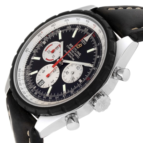 | Model Name: | Breitling Navitimer Chronomatic Black Dial Black Strap Steel Mens Watch A14360 |