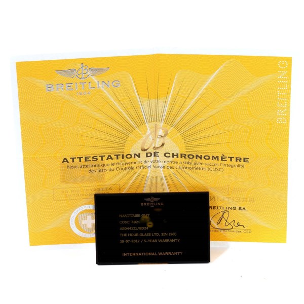 | Model Name: | Breitling Navitimer GMT 48mm Black Dial Steel Mens Watch AB0441 Box Card |