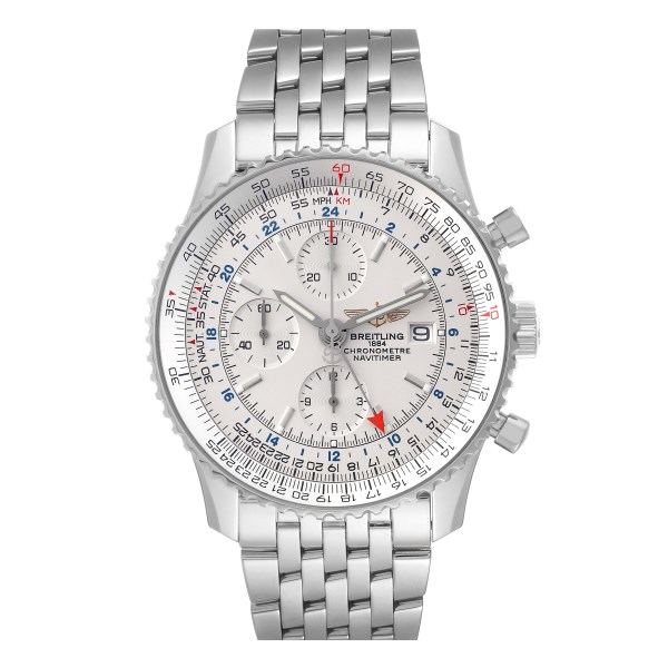 | Model Name: | Breitling Navitimer World GMT Chronograph Silver Dial Steel Mens Watch A24322 |