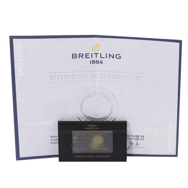 | Model Name: | Breitling Premier B01 Chronograph Silver Dial Steel Mens Watch AB0118 Box Papers |