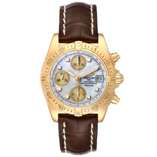 | Model Name: | Breitling Windrider Cockpit Yellow Gold Mother of Pearl Mens Watch K13358 Box Papers |
