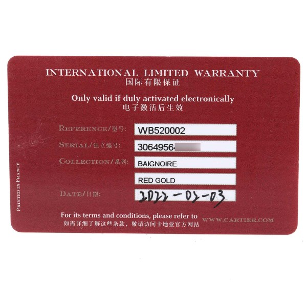 | Model Name: | Cartier Baignoire Rose Gold Diamond Ladies Watch WB520002 Box Card Unworn |