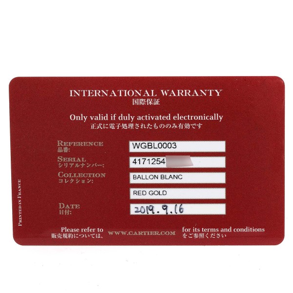 | Model Name: | Cartier Ballon Blanc Rose Gold Diamond Ladies Watch WGBL0003 Box Card |