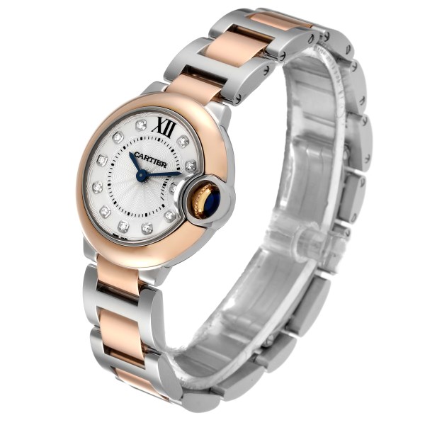 | Model Name: | Cartier Ballon Bleu 28 Steel Rose Gold Diamond Ladies Watch W3BB0005 Box Papers |