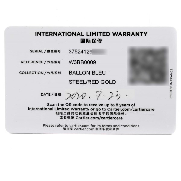 | Model Name: | Cartier Ballon Bleu Steel Rose Gold Diamond Ladies Watch W3BB0009 Box Card |