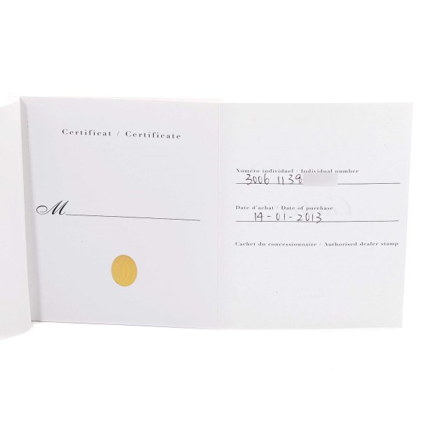 | Bezel: | 18K yellow gold bezel set with original Cartier factory diamonds. |