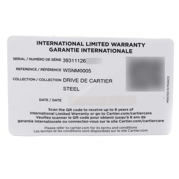 | Model Name: | Cartier Drive Retrograde Large Day Night Indicator Mens Watch WSNM0005 Card |
