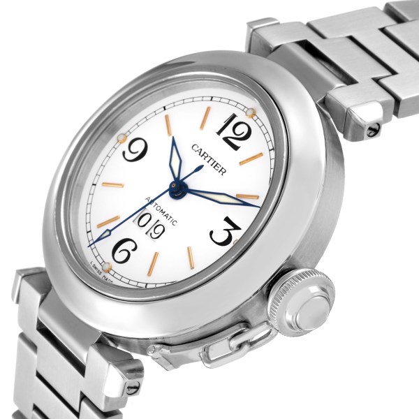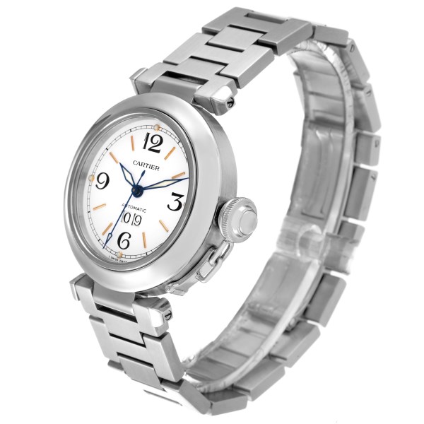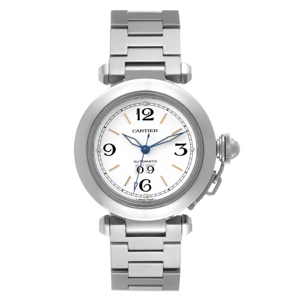 | Model Name: | Cartier Pasha C Midsize Big Date White Dial Steel Mens Watch W31044M7 Box Papers |