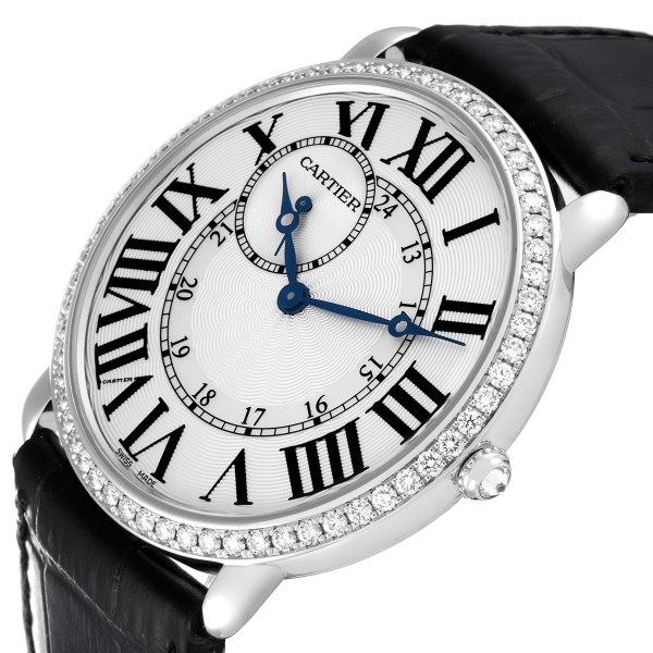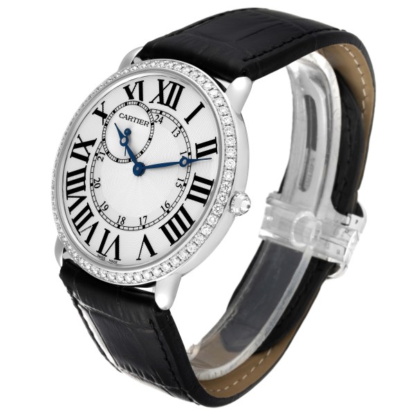 | Model Name: | Cartier Ronde Louis 18K White Gold Diamond Bezel Mens Watch WR007002 |