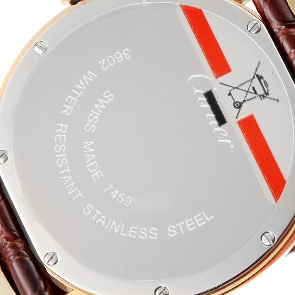 | Bracelet: | Brown leather strap with the 18K rose gold tang buckle. |