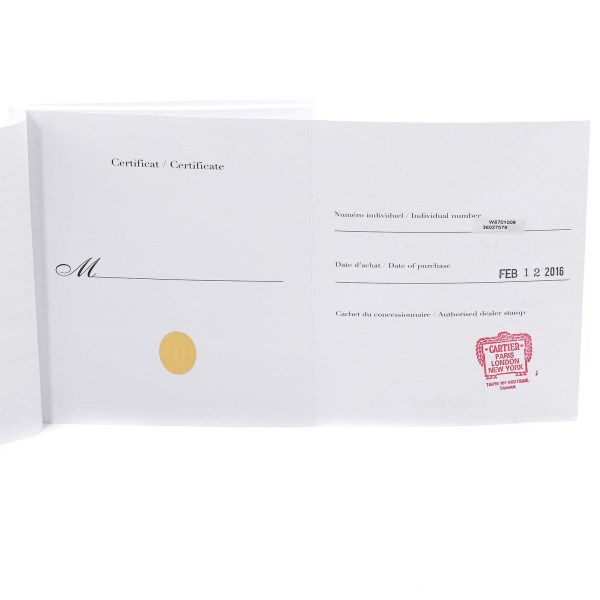 | Box & Papers: | Cartier papers, presentation non-Cartier box. |