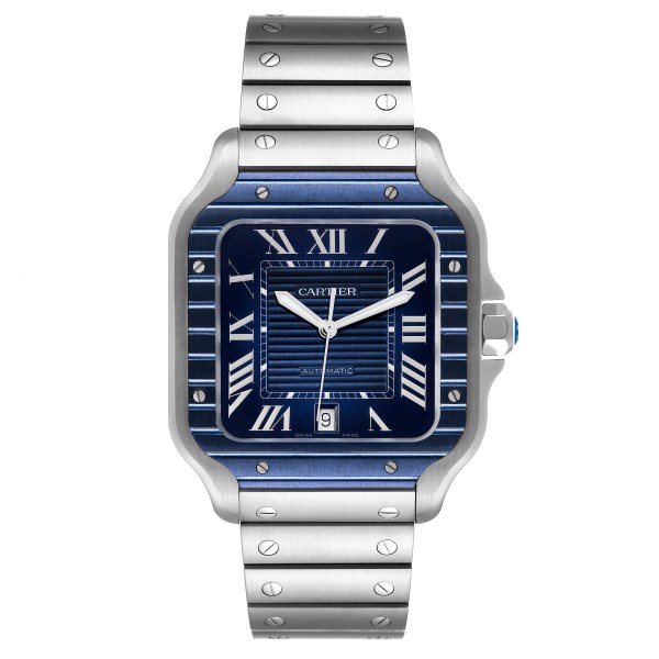 | Model Name: | Cartier Santos Large Stainless Steel PVD Blue Dial Mens Watch WSSA0048 |