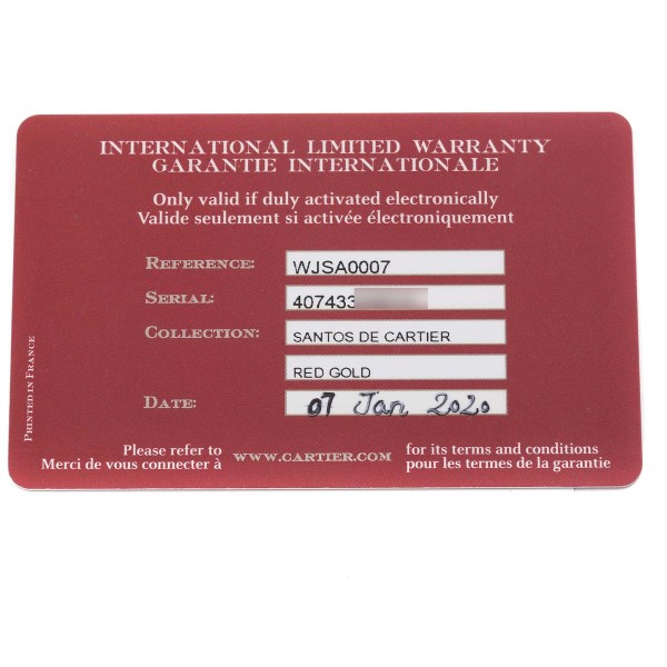 | Model Name: | Cartier Santos Midsize Rose Gold Diamond Mens Watch WJSA0007 Box Card |