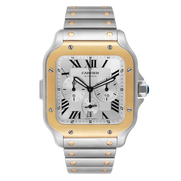 | Model Name: | Cartier Santos XL Chronograph Steel Yellow Gold Mens Watch W2SA0008 Box Papers |