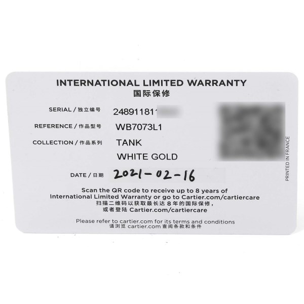 | Model Name: | Cartier Tank Americaine White Gold Diamond Ladies Watch WB7073L1 Box Card |