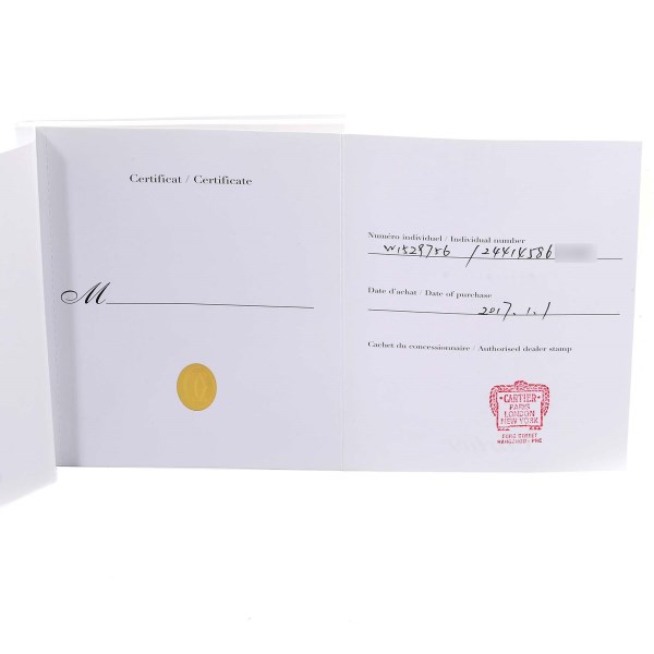 | Box & Papers: | Cartier papers, presentation non-Cartier box. |