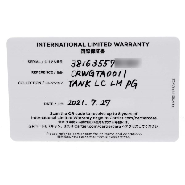 | Model Name: | Cartier Tank Louis Rose Gold Mechanical Mens Watch WGTA0011 Box Card |