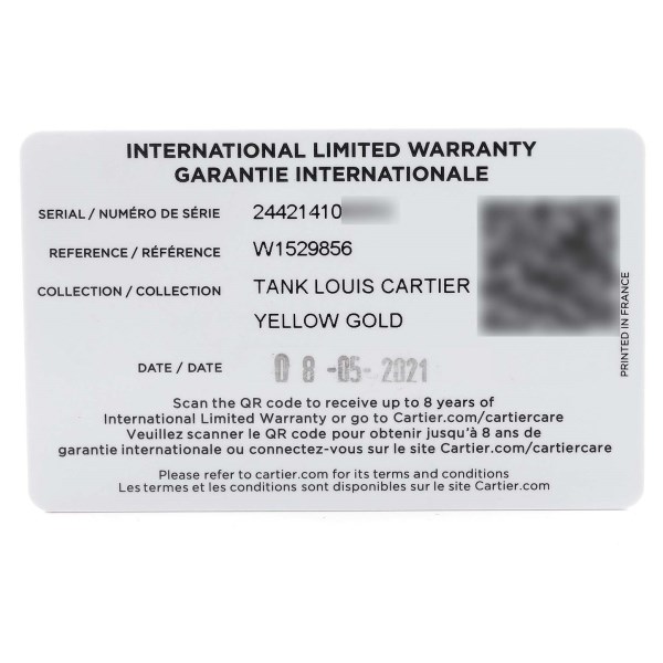| Model Name: | Cartier Tank Louis Small Yellow Gold Brown Strap Ladies Watch W1529856 Card |