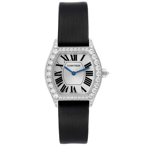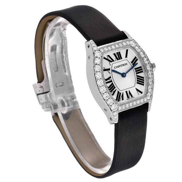 | Model Name: | Cartier Tortue 18k White Gold Diamond Black Strap Ladies Watch WA507231 |