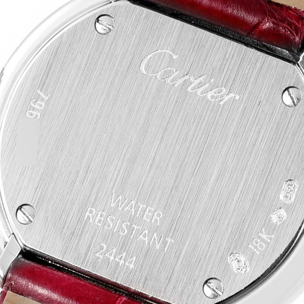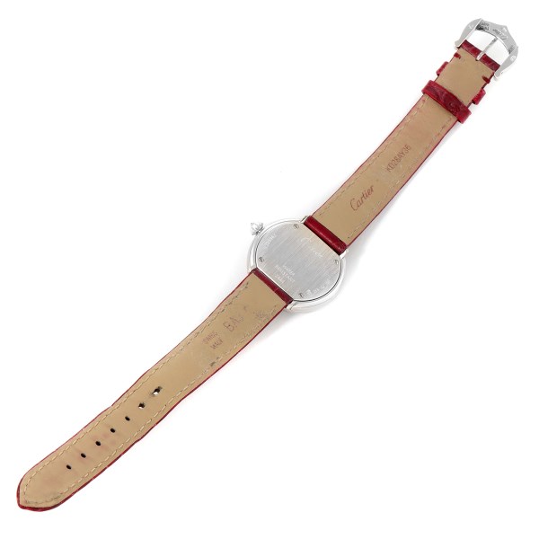 | Bracelet: | Burgundy leather strap with 18K white gold tang buckle. |