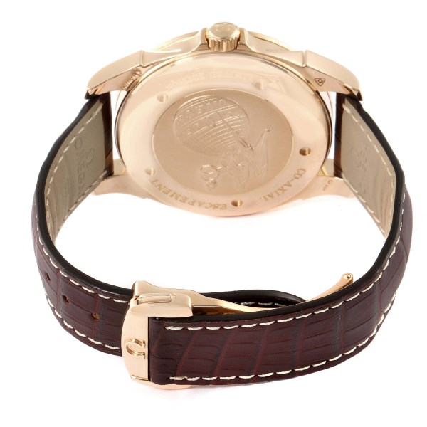 | Bracelet: | Brown leather strap with 18k rose gold deployant buckle. |