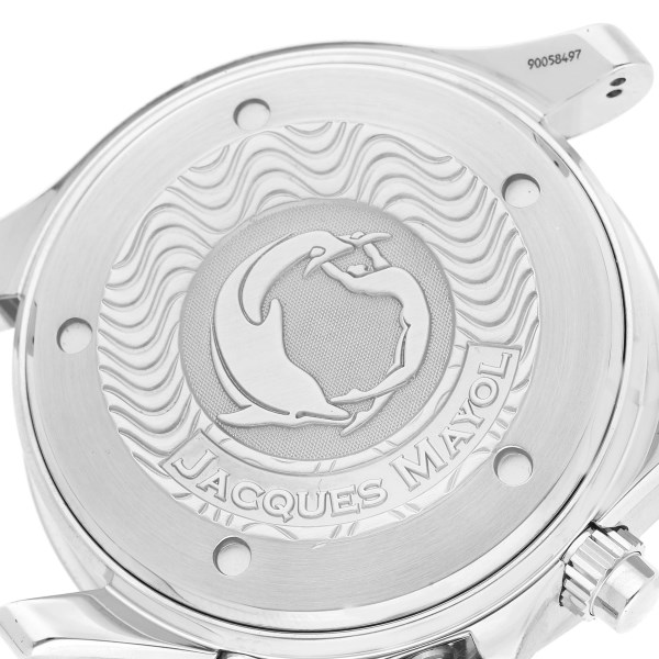 | Case: | Stainless steel case 42.0 mm in diameter. Omega logo on the crown. 'Jacques Mayol' engraved on case back. |
