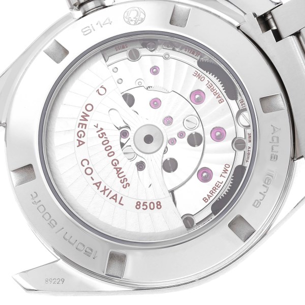 | Movement: | Automatic self-winding movement with anti-magnetic Co-Axial Escapement. Caliber 8508. Free sprung-balance, 2 barrels mounted in series, automatic winding in both directions. Blackened screws, barrels and balance wheel and ">15'000 GAUSS" engraved in red varnish on rotor. |