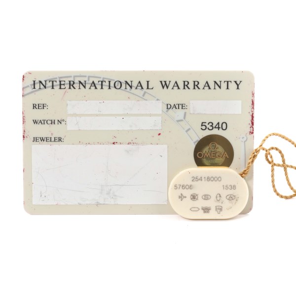 | Box & Papers: | Open Omega card and hang tag; Presentation non-Omega box. |