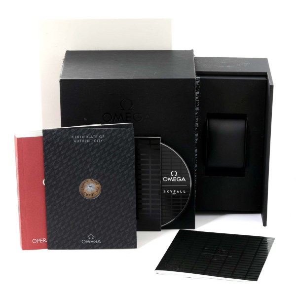 | Case: | Stainless Steel case 41.0 mm in diameter. Omega logo on a crown. Caseback is stamped with a gun-barrel design with a "bullet" decoration on the rotor and stampted 'James Bond 50 Years'. Helium escape valve at the 10 o'clock position. |