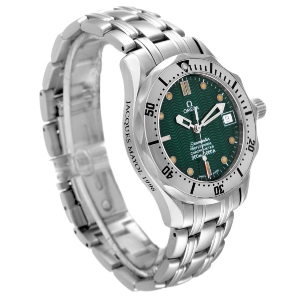 | Case: | Stainless steel case 36.25 mm in diameter. Omega logo on the crown. 'Jacques Mayol 1996' engraved in script on the side. |