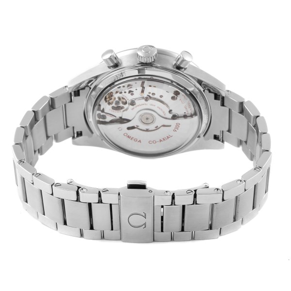 | Movement: | Officially certified chronometer automatic self-winding chronograph movement. Column wheel mechanism and Co-Axial escapement. Silicon balance-spring on free sprung-balance, 2 barrels mounted in series, automatic winding in both directions. Rhodium plated finish with exclusive Geneva waves in arabesque. Caliber 9300. |