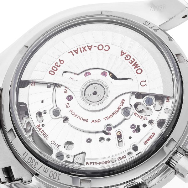 | Case: | Brushed/Satin finished stainless steel case 42.25 mm in diameter. Polished finished beveled edges. Exhibition case back. Omega logo on a crown. |