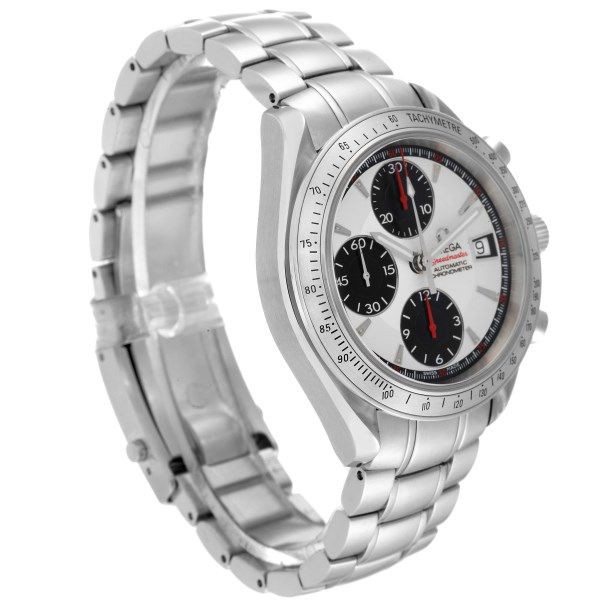 | Dial: | Silver dial with indexes and 3 black subdials - a small seconds counter, 30-minute recorder and 12-hour recorder. Date window at the 3 o'clock position. |