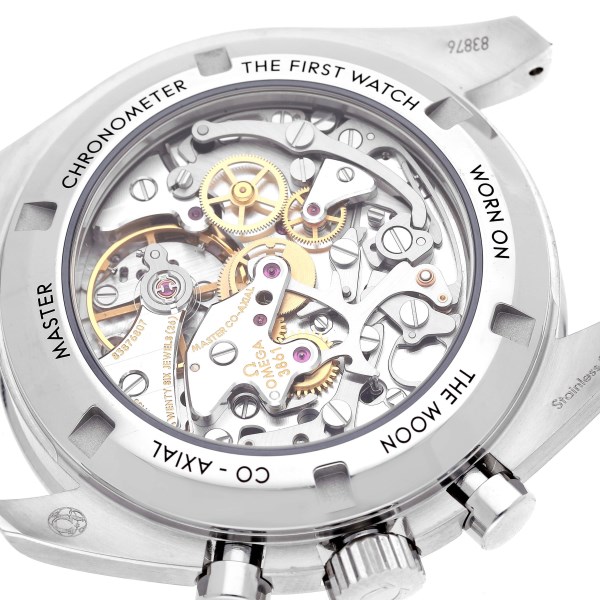| Case: | Stainless steel round case 42 mm in diameter. Omega logo on the crown. Exhibition sapphire case back. |
