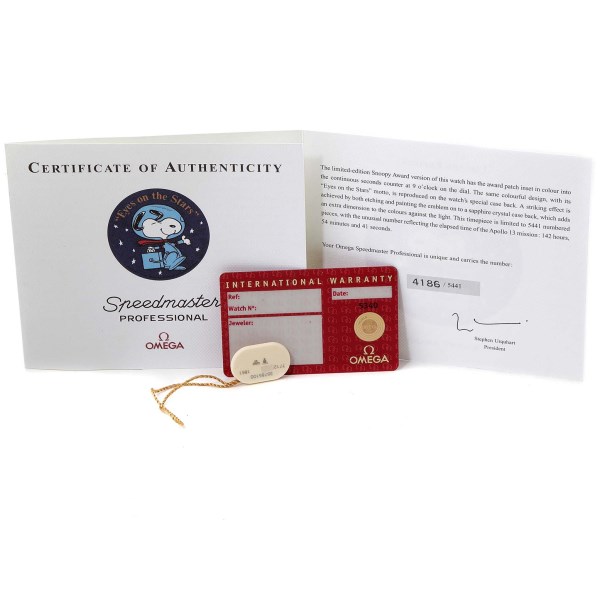 | Model Name: | Omega Speedmaster Professional Snoopy MoonWatch Steel Mens Watch 3578.51.00 Box Card |