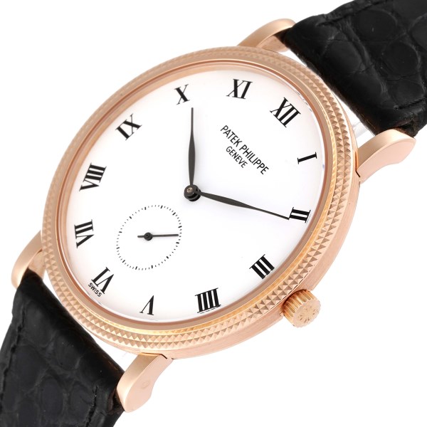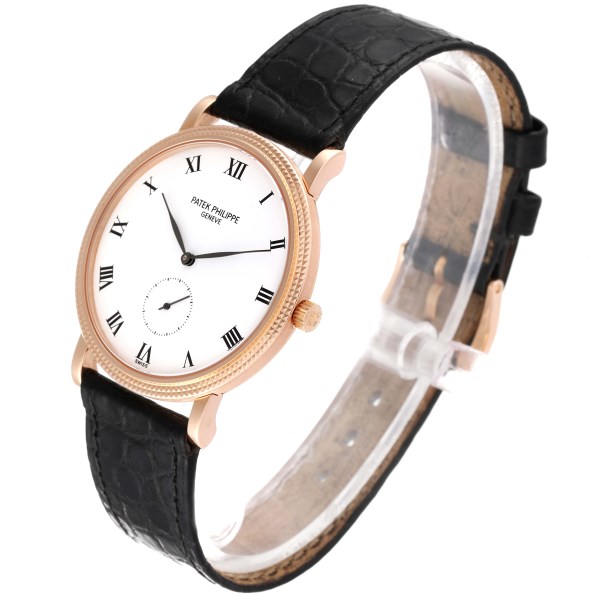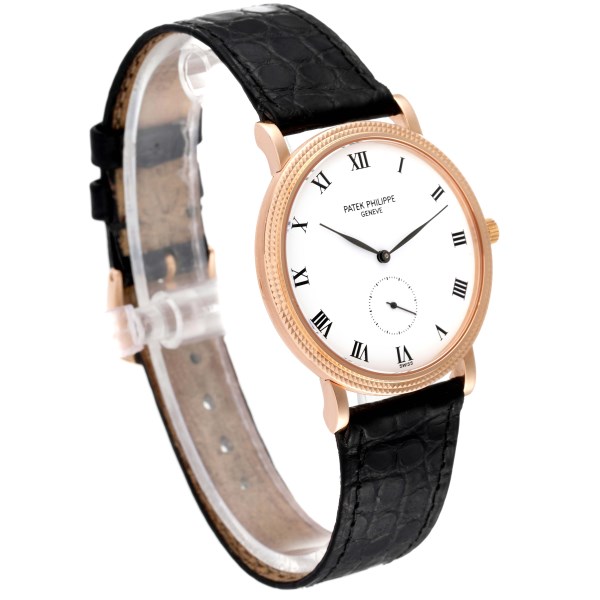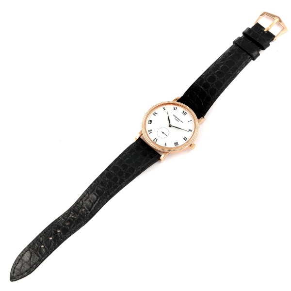| Model Name: | Patek Philippe Calatrava 18k Rose Gold Black Strap Mens Watch 3919 |