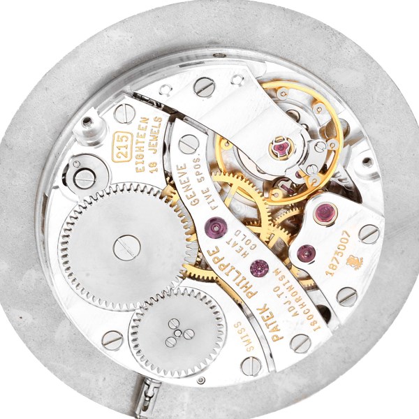 | Movement: | Manual winding movement. Rhodium plated, fausses cotes decoration, straight-line lever escapement, Gyromax balance adjusted to heat, cold, isochronism and 5 positions, shock absorber self-compensating free-sprung flat balance spring. |