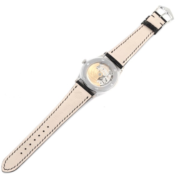| Bracelet: | Black leather strap with 18K white gold tang buckle. |
