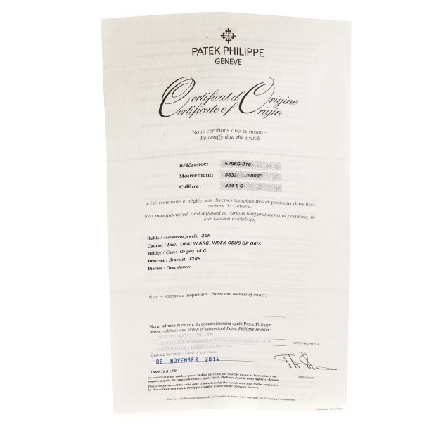 | Model Name: | Patek Philippe Calatrava 18K White Gold Silver Dial Mens Watch 5296 Papers |