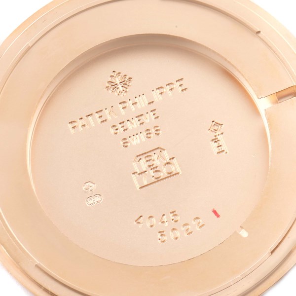 | Case: | 18K rose gold case 33.0 mm in diameter. Straight lugs. |
