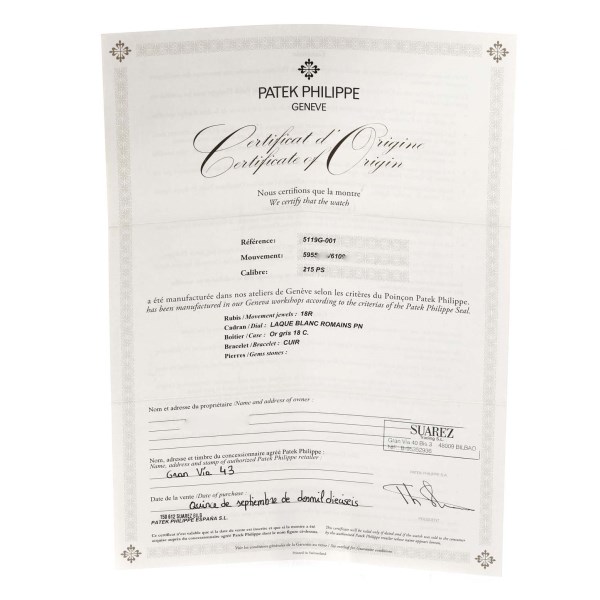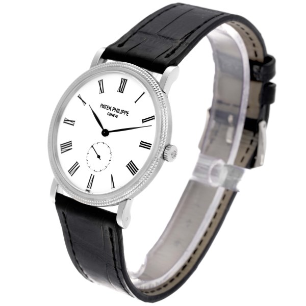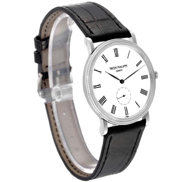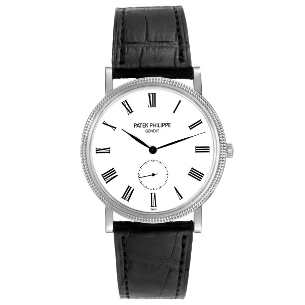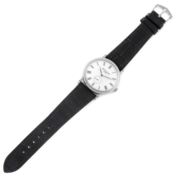 | Model Name: | Patek Philippe Calatrava White Gold Black Strap Mens Watch 5119G Papers |