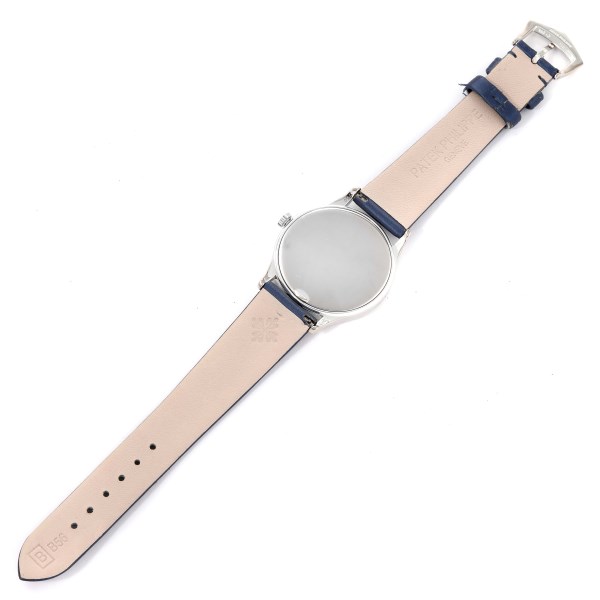 | Model Name: | Patek Philippe Calatrava White Gold Blue Dial Diamond Ladies Watch 4896 Papers |