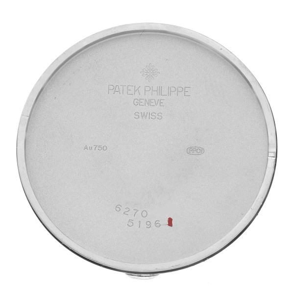 | Case: | 18k white gold case 37.0 mm in diameter. Snap-on case back, concave lugs. |