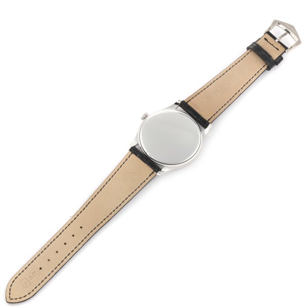 | Case: | 18k white gold case 37.0 mm in diameter. Snap-on case back, concave lugs. |