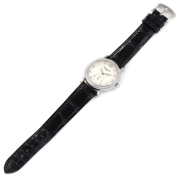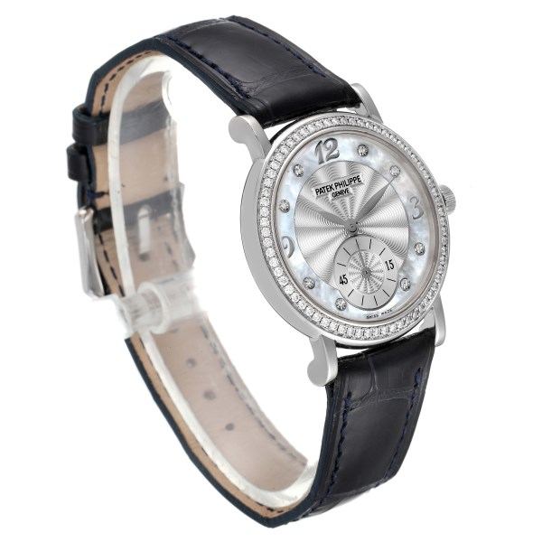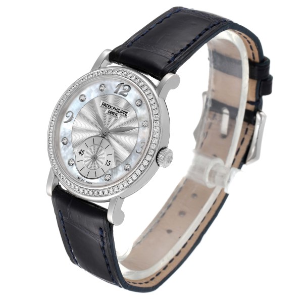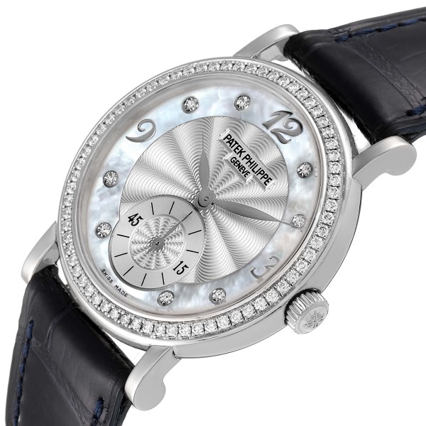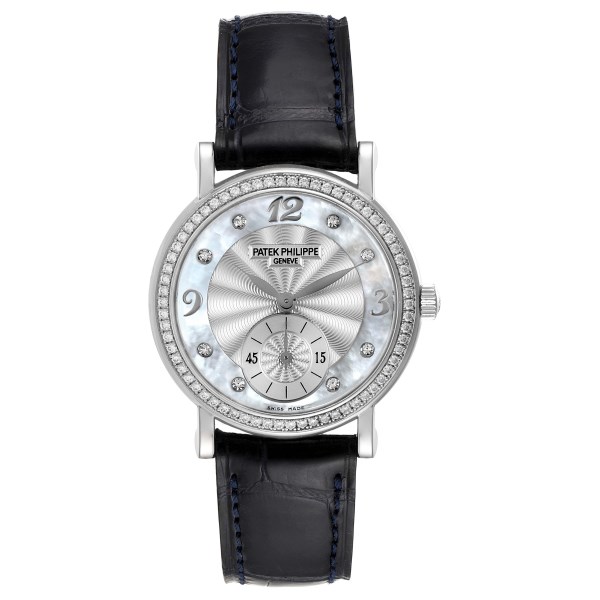 | Model Name: | Patek Philippe Calatrava White Gold Mother of Pearl Diamond Ladies Watch 4959 |